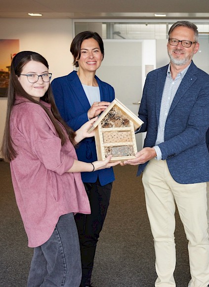 Die Lehrlinge der ÖBB haben sich der Natur und der Artenvielfalt gewidmet und Insektenhotels angefertigt. Zehn Stück davon wurden von ÖBB-Vorstandsdirektorin Silvia Angelo in Anwesenheit der Leiterin "Aus- und Weiterbildung" Ursula Bazant und dem Leiter "Lehrlingsausbildung" Jürgen Haberl an die BBL überreicht. Präsident Erich Rohrhofer freute sich über diese großartige Initiative und bedankte sich bei den beiden ÖBB-Lehrlingen Tabita Iojan und Marco Weber von der Lehrwerkstätte Wien im Namen der BBL sehr herzlich.