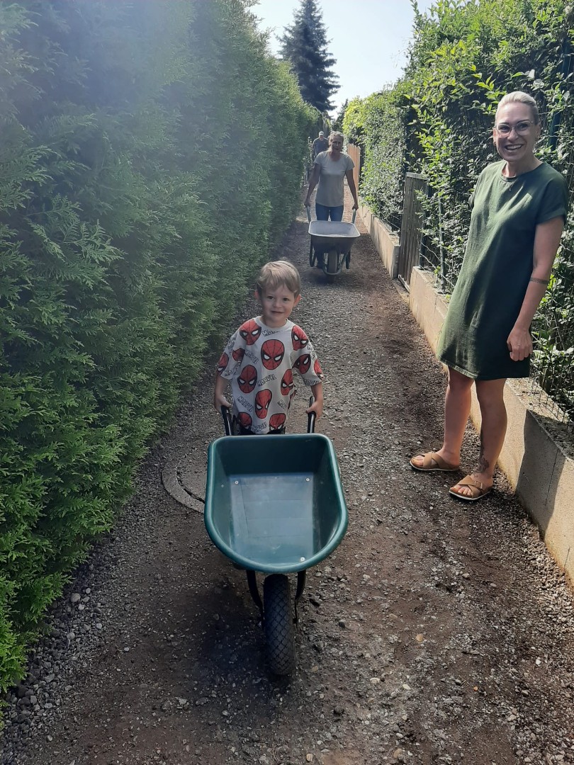 Also wurde zur Gemeinschaftsarbeit aufgerufen. Es wurde geplant, ausgerechnet, wie viel Material benötigt werden würde, ein Termin wurde gesucht, und dann hofften wir, dass das Wetter passen würde.