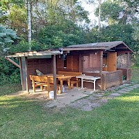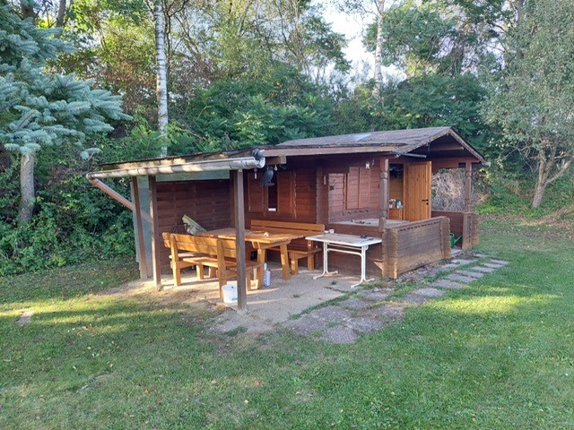 Ruhig gelegener Garten mit eingeschränkter Zufahrt. Die vorhandene Gartenhütte mit Terrasse bietet Potenzial zur Renovierung nach eigenen Vorstellungen