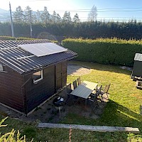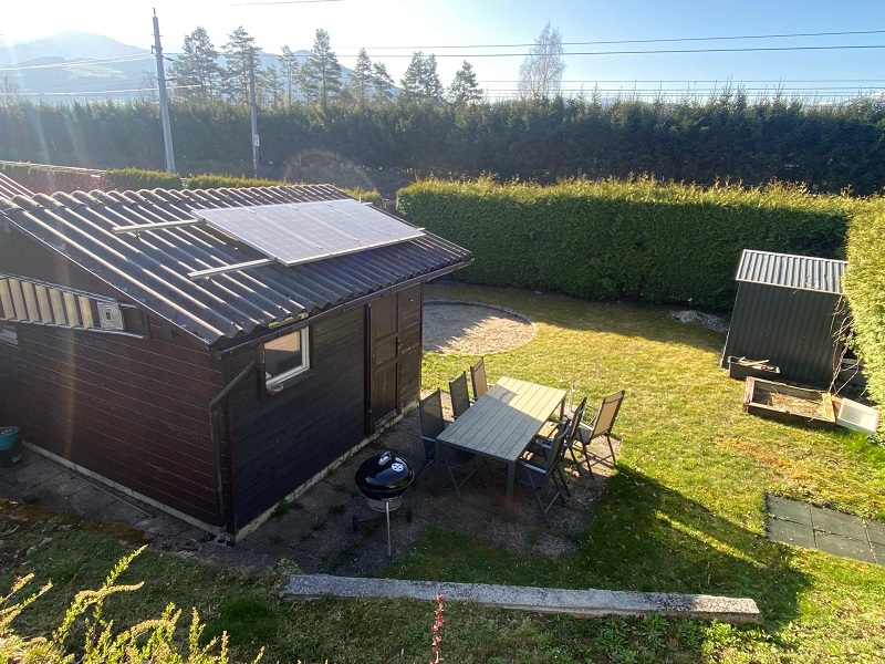 Garten in der Gartenanlage Weyern - Gartenhütte mit einem kleinen Geräteschuppen.
