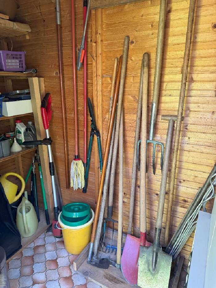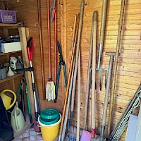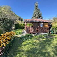 schöner ruhiger Garten mit gut erhaltener Holzhütte, direkt am Murufer gelegen, inklusive Inventar und Werkzeuge.