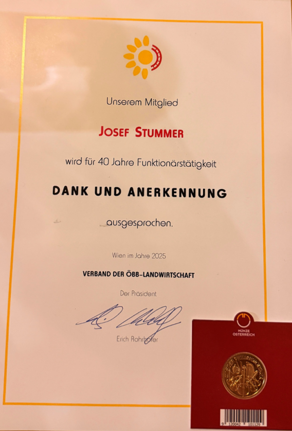 Der Verband der ÖBB-Landwirtschaft gratuliert dem Jubilar sehr herzlich zu diesem besonderen Jubiläum und bedankt sich für seine jahrzehntelange engagierte Arbeit. Wir freuen uns auf viele weitere Jahre der guten Zusammenarbeit.