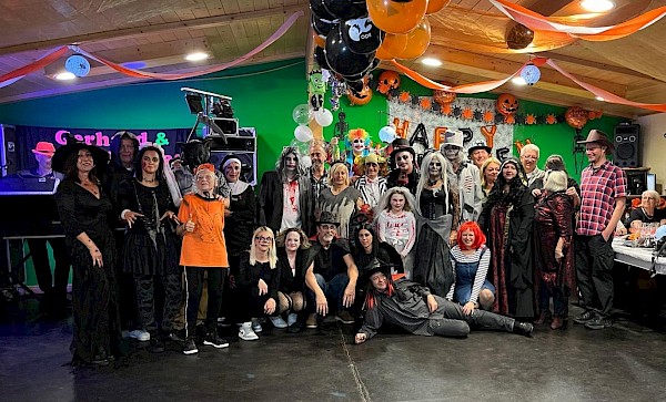 Ein gemeinsames Foto wird im Vereinsarchiv ewig an diese besondere Nacht erinnern. So bleibt noch zu sagen: Die Halloweenfeier im Kleingartenverein Strebersdorf war ein voller Erfolg und wir freuen uns schon auf die nächste schaurige Nacht im nächsten Jahr.