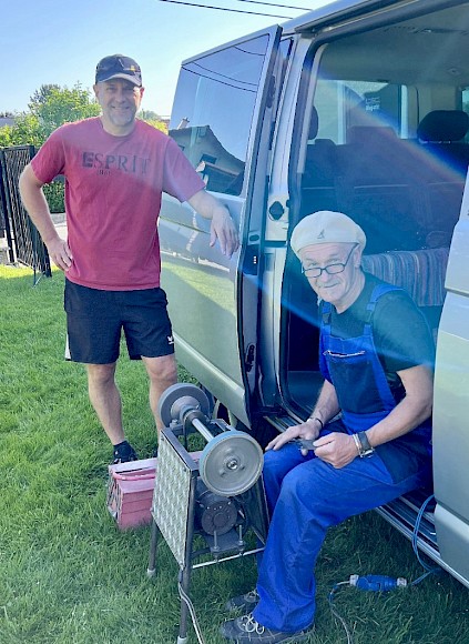 Auch dieses Jahr war in Kagran wieder der Messerschleifer zu Gast: Es wurden alle Arten von Messern und Gartengeräten geschliffen oder poliert. Die bewährte Aktion wurde von den Mitgliedern des Kleingartenvereins Kagran in großer Anzahl in Anspruch genommen.