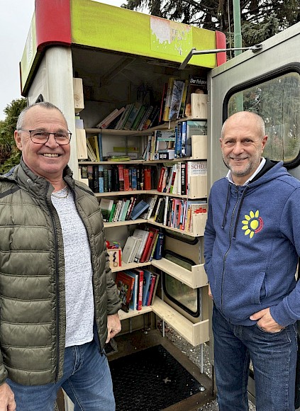 Mit der Errichtung eines offenen Bücherschranks hat der Zweigverein Kagran eine schon seit längerem bestehende Idee vor Kurzem erfolgreich umgesetzt: Mit freundlicher Unterstützung von A1 wurde eine ausrangierte Telefonzelle besorgt, die nun - mit Regalen bestückt - als wasserfester Schrank dient. Der Bücherschrank wurde von den Mitgliedern gut angenommen und bereits fleißig mit Büchern gefüllt; einige Bücher wanderten rasch zu neuen Leser:innen. Auch die Außengestaltung des Schranks wird demnächst umgesetzt. Obmann Gerhard Grundböck und sein Stellvertreter Horst John freuen sich über das gelungene Projekt und die positiven Reaktionen der Mitglieder des Kleingartenvereins!