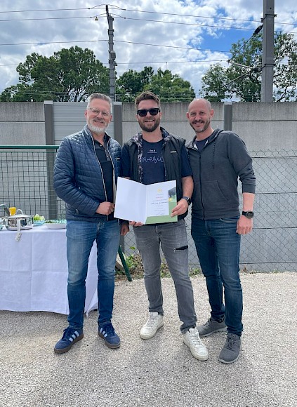 Obmann Kalod erinnerte an die kürzlich umgesetzten Infrastrukturmaßnahmen wie Kanal- und Wasserleitung, den neuen Zaun und die Vereinsstiege. Präsident Rohrhofer nutzte den Anlass, um Bernd Ruiss für zehn Jahre engagierte Funktionärstätigkeit auszuzeichnen.